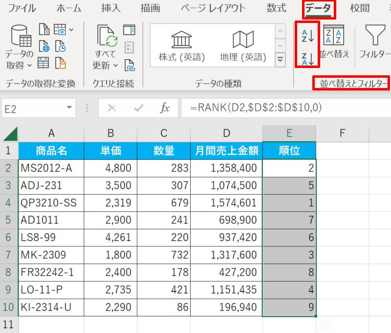 RANK関数と並べ替えを組み合わせて使うメリットは?
