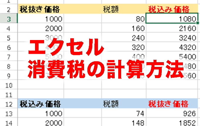 Excelで消費税を計算:税込み・税抜き価格の公式と実例