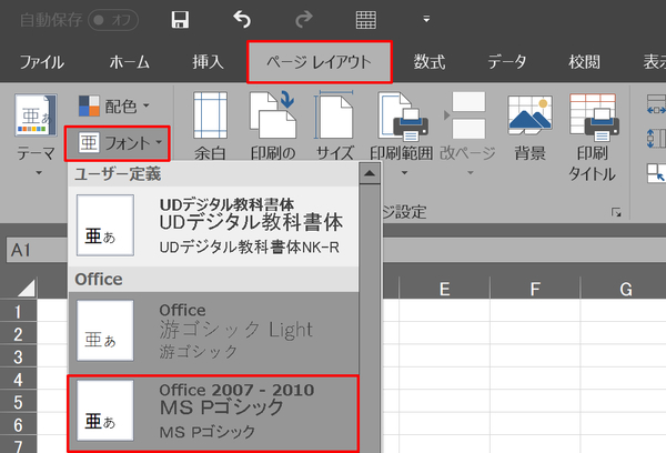既存のワークシートのフォント変更方法