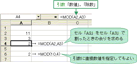 と入力すると、結果は2になります。この関数は、循環的なパターンを扱う際に特に便利です。例えば、曜日を計算したり、特定の間隔でデータをグループ化したりする際などに活用できます。