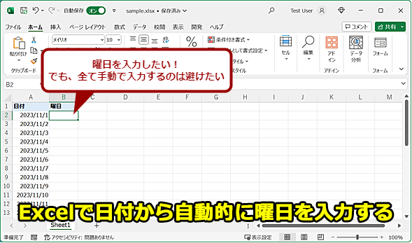 Excel 曜日書式設定:日付から自動的に曜日を表示