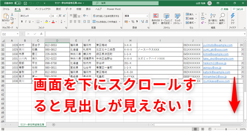 Excel スクロール固定設定:行や列を常に表示させる方法