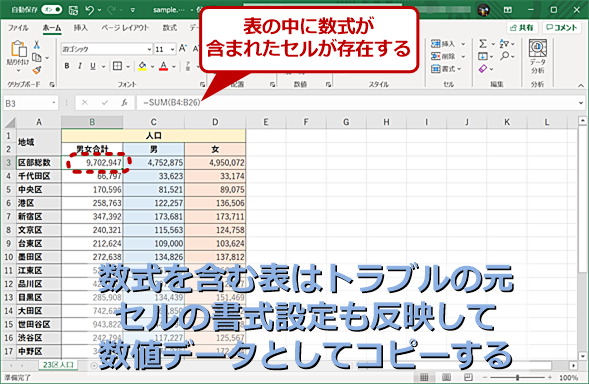 Excelで表をコピーする際、書式や数式を維持する方法は?