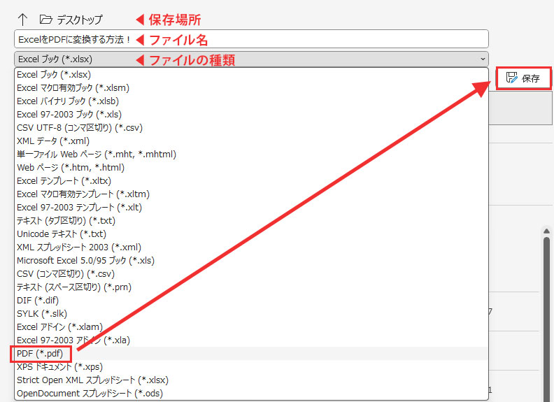 Excel ファイルをCSV・PDF・HTMLなどに変換する手順