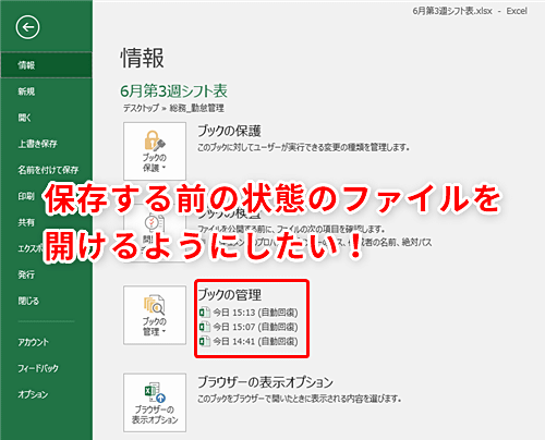 復元の手順は、Excelの編集履歴機能を活用することで、以前のバージョンに簡単に戻すことが可能です。具体的には、まずは[ファイル]メニューから[情報]を選択します。次に、表示された画面の[バージョンの管理]セクションで、過去のバージョンの一覧が表示されます。ここから、復元したいバージョンを選択し、[復元]ボタンをクリックします。これにより、選択したバージョンが現在のファイルに上書きされます。ただし、復元すると現在のバージョンは失われてしまうため、復元前に現在のバージョンを別名で保存しておくことをお勧めします。この方法を活用することで、重要なデータの損失を防ぎ、作業の効率化を図ることができます。