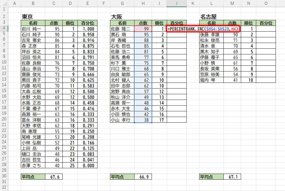 Excel割合関数:PERCENTRANKやRANKでデータ解析