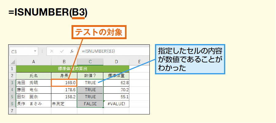 を返します。このように、ISNUMBER関数は数値かどうかを簡単に判断できるため、データの検証や条件付きフォーマットの設定に重宝します。