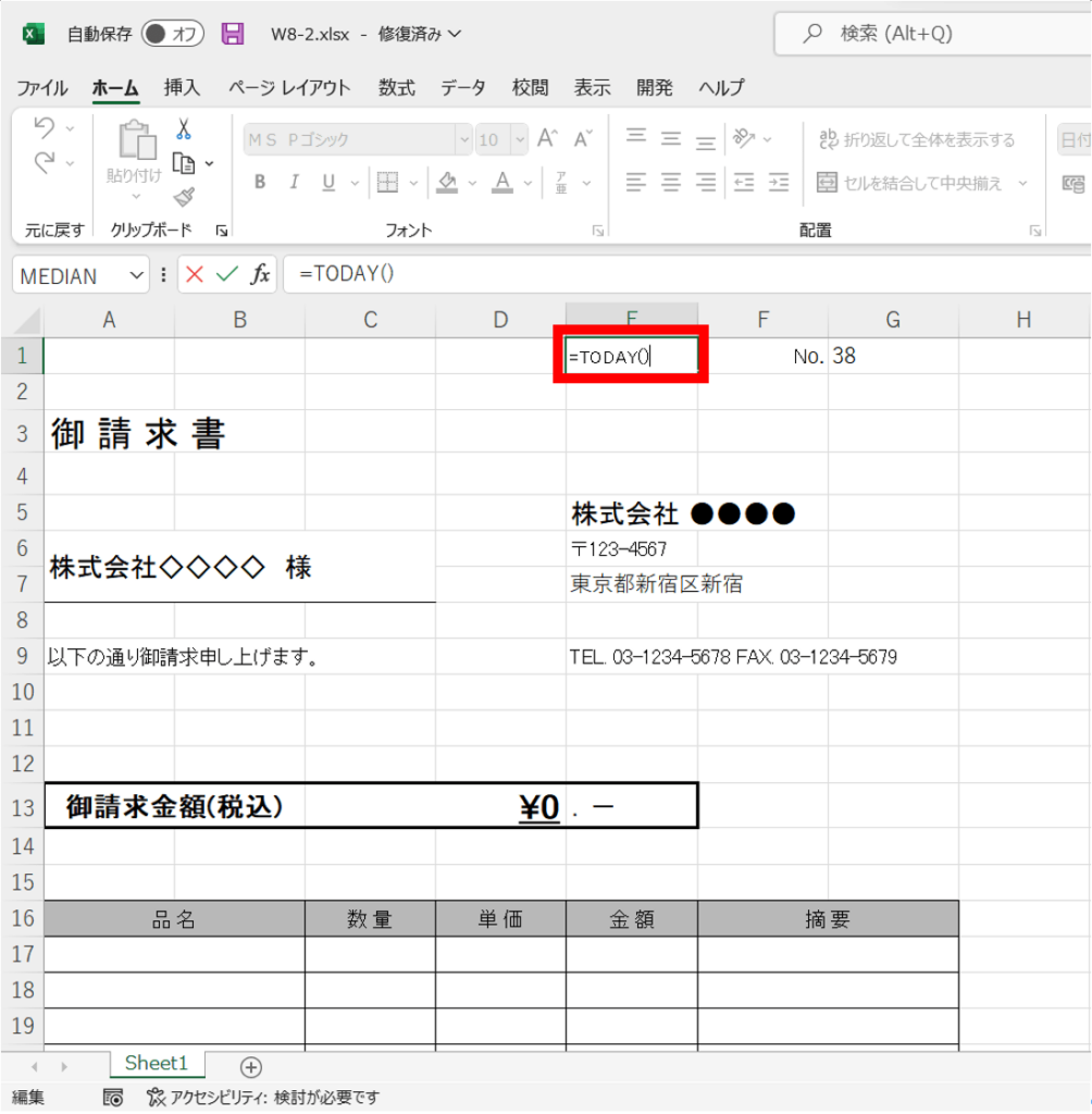 と入力すると、そのセルには今日の日付が自動的に表示されます。また、ワークシートを開くたびに日付が更新されるため、常に最新の日付を確認できます。