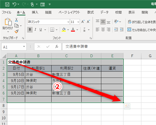 4. Shiftキーを押しながら始点と終点のセルをクリック