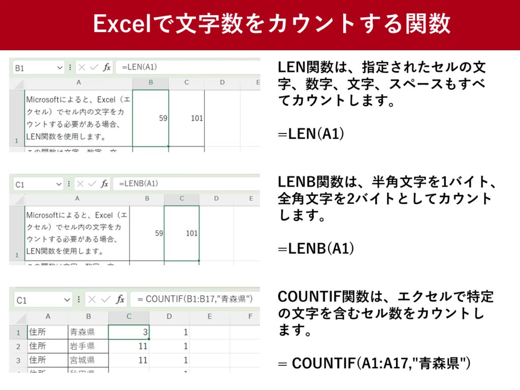 Excel 文字カウント:LEN/SUBSTITUTE/COUNTIF関数で文字数を正確に把握